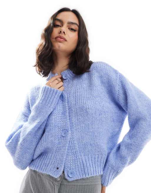 Cárdigan azul pastel con cuello redondo de punto suelto de ASOS DESIGN