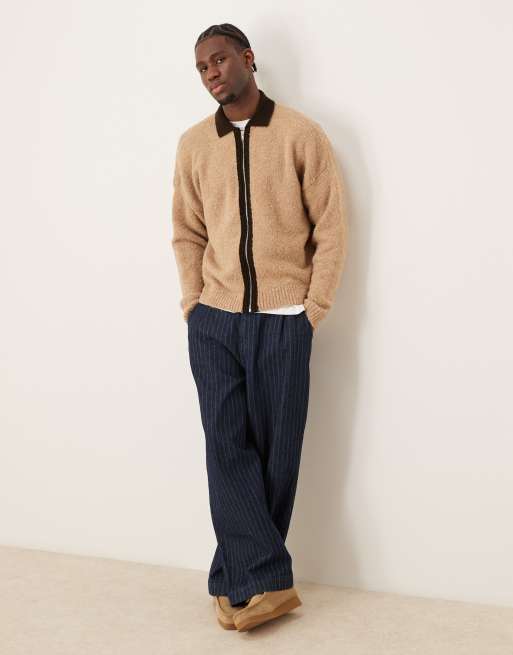 Cárdigan beis extragrande con cremallera en contraste de punto texturizado de ASOS DESIGN