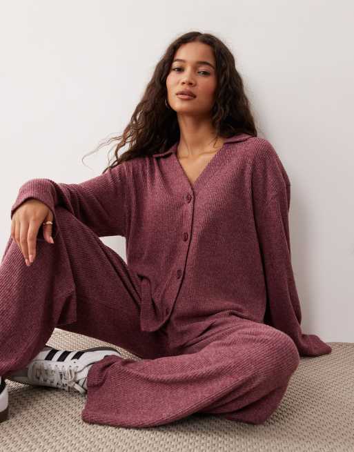 Cárdigan burdeos con botones de canalé cepillado muy suave de ASOS DESIGN