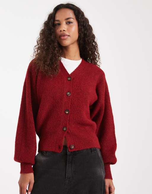Cárdigan burdeos con manga murciélago de punto mullido de ASOS DESIGN