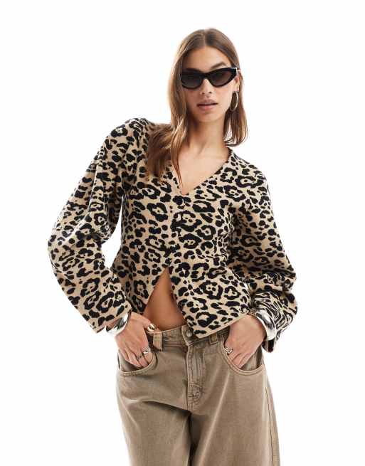 Cárdigan estructurado con cuello de pico y estampado de leopardo de ASOS DESIGN