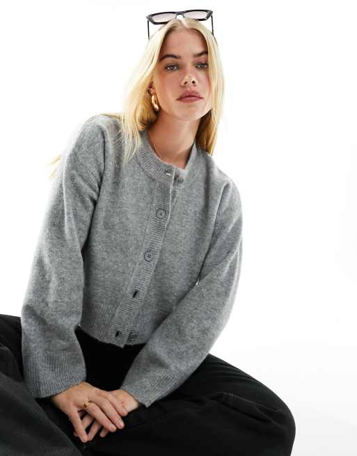 Cárdigan gris abotonado con cuello redondo de ASOS DESIGN