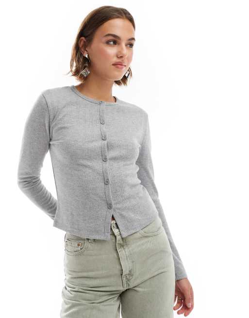 Cárdigan gris de punto pointelle de ASOS DESIGN