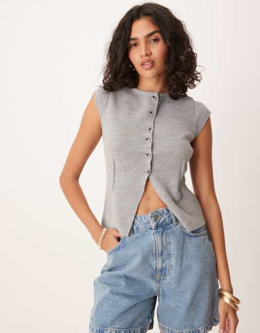 Cárdigan gris jaspeado con mangas de casquillo de punto de ASOS DESIGN