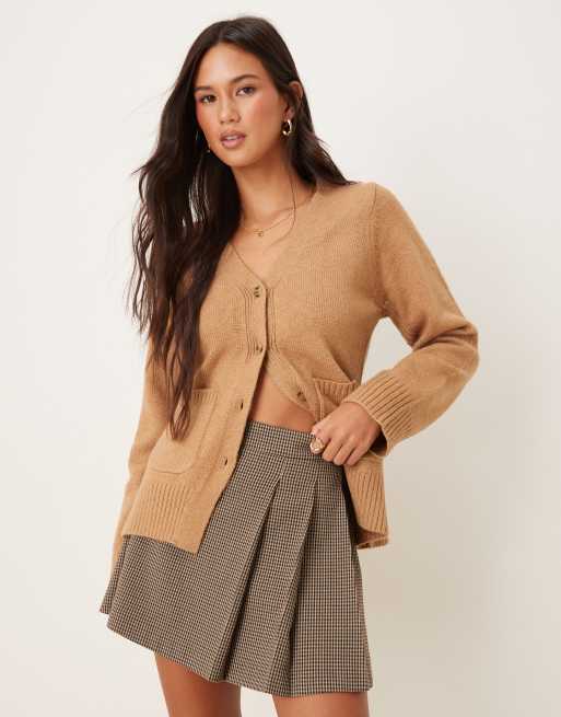 Cárdigan marrón galleta con cuello de pico, cintura ceñida y detalle de bolsillo de ASOS DESIGN