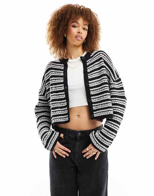 Cárdigan monocromático a rayas de punto calado de ASOS DESIGN