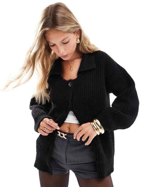 Cárdigan negra extragrande con solapas de punto grueso de ASOS DESIGN