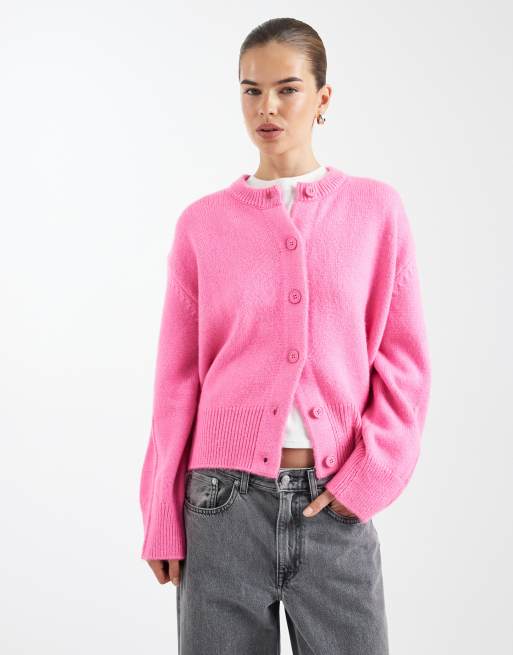 Cárdigan rosa luminoso de corte cuadrado con cuello redondo y detalle de abertura lateral de ASOS DESIGN