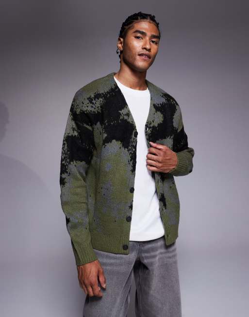 Cárdigan verde holgado con estampado abstracto y cuello de pico de punto de ASOS DESIGN