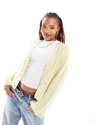 Cárdigan verde lima con cuello de pico y botones delanteros de hilo plisado de ASOS DESIGN