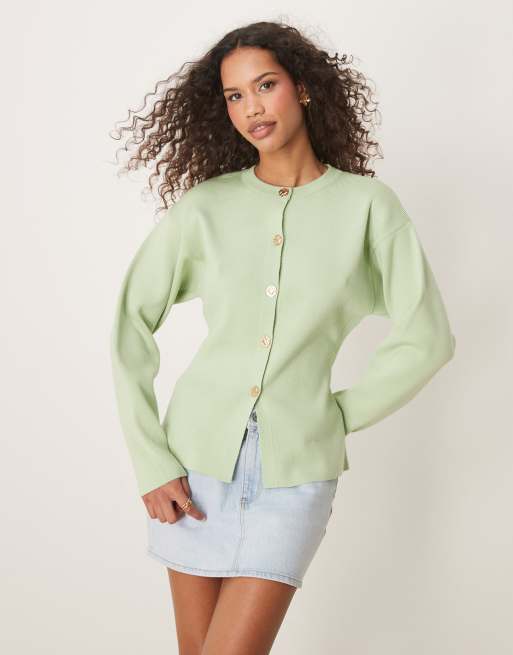 Cárdigan verde salvia estructurado con cuello redondo y botones dorados de punto de ASOS DESIGN