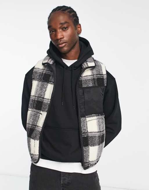 Chaleco a cuadros blancos y negros de borreguito de ASOS DESIGN