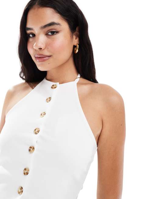 Chaleco blanco abotonado con cuello halter de canalé de ASOS DESIGN