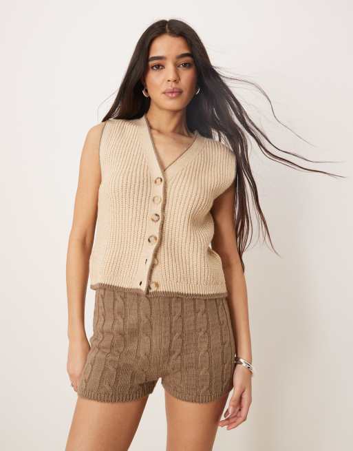 Chaleco color piedra claro con pespuntes de festón de punto de ASOS DESIGN