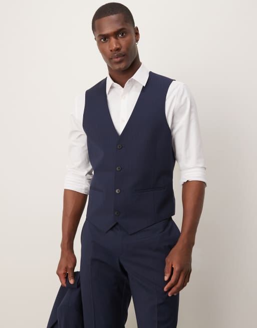 Chaleco de traje azul marino con raya diplomática de ASOS DESIGN Wedding