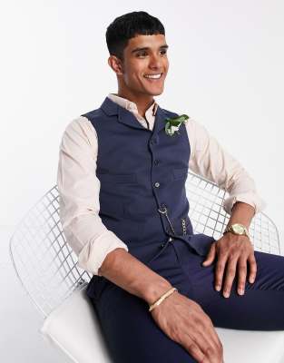 Chaleco de traje azul marino entallado de doble botonadura con cadena dorada de ASOS DESIGN