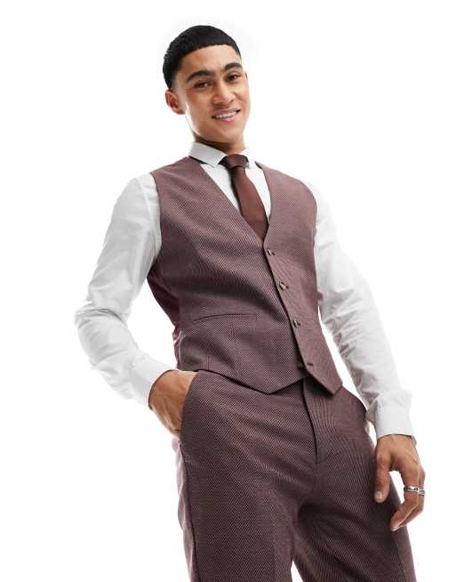 Chaleco de traje burdeos microtexturizado entallado de ASOS DESIGN Wedding