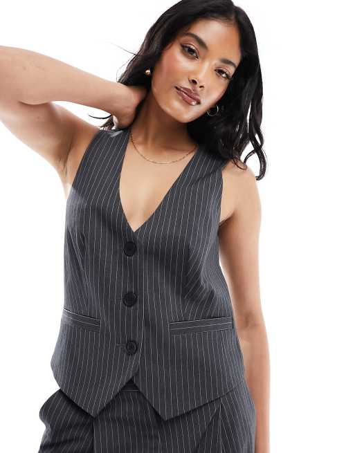 Chaleco de traje gris con raya diplomática de ASOS DESIGN (parte de un conjunto)