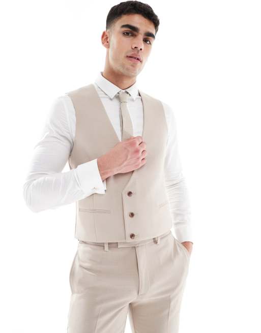 Chaleco de traje marrón topo entallado con textura flameada de ASOS DESIGN