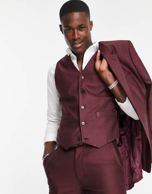Chaleco de traje Oxford burdeos entallado de ASOS DESIGN
