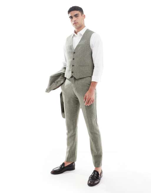 Chaleco de traje verde de corte slim con patrón de espiga de tejido rico en lana de ASOS DESIGN