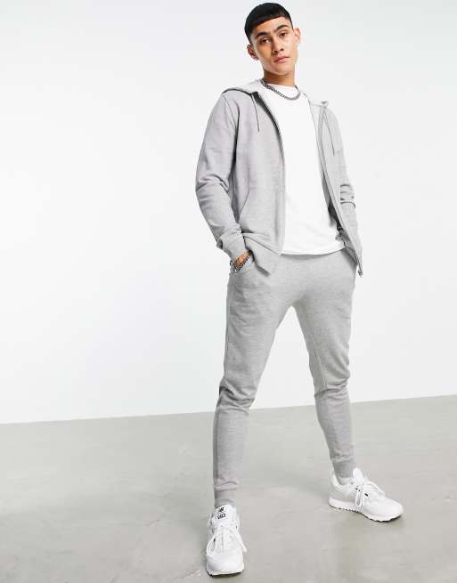 Chándal gris de sudadera con capucha entallada y joggers pitillo de ASOS DESIGN