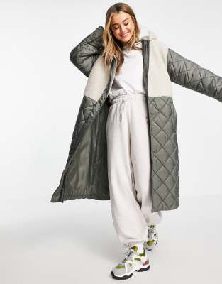Chaqueta acolchada caqui con parche de borreguito de ASOS DESIGN