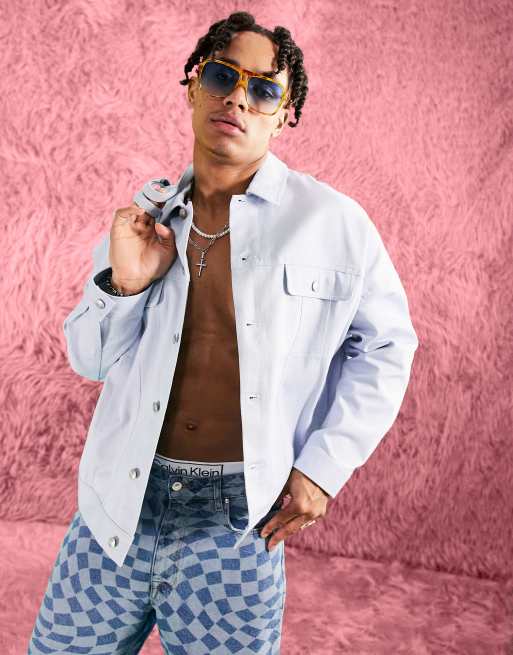 Chaqueta azul claro extragrande de estilo wéstern de sarga de ASOS DESIGN