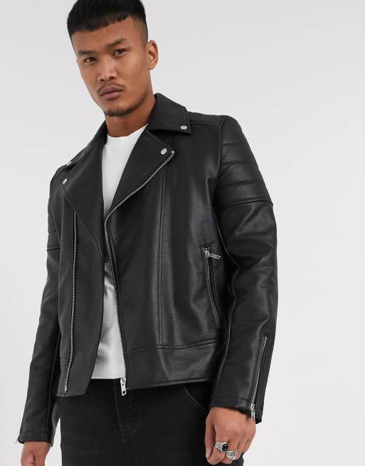 Chaqueta biker de cuero sintético negro de ASOS DESIGN