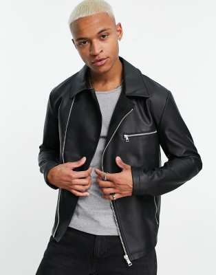 Chaqueta biker de cuero sintético negro de ASOS DESIGN