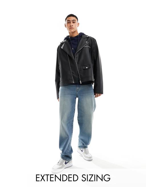 Chaqueta biker de cuero sintético negro de ASOS DESIGN