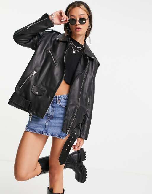Chaqueta biker extragrande negra de cuero de ASOS DESIGN
