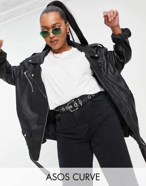 Chaqueta biker extragrande negra de cuero sintético de ASOS DESIGN Curve