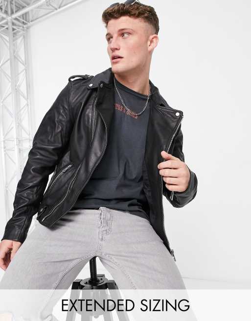 Chaqueta biker negra de cuero auténtico de ASOS DESIGN