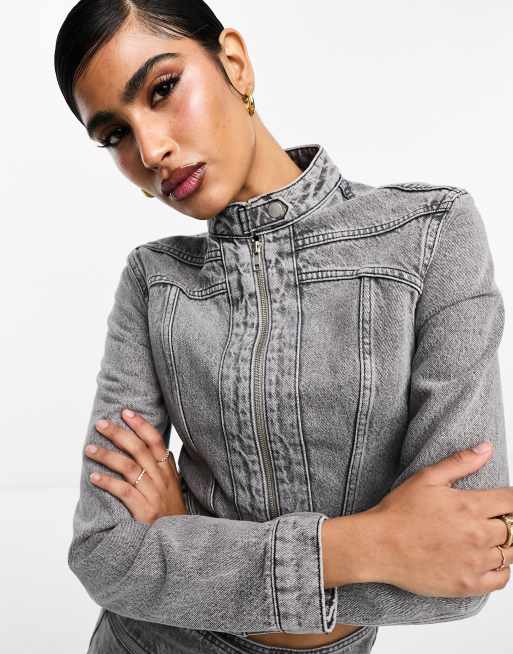 Chaqueta biker vaquera gris lavado de ASOS DESIGN (parte de un conjunto)