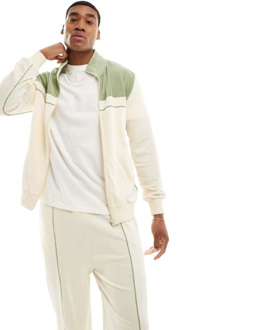 Chaqueta blanco hueso de corte estándar con detalles verdes de velour acanalado de ASOS DESIGN