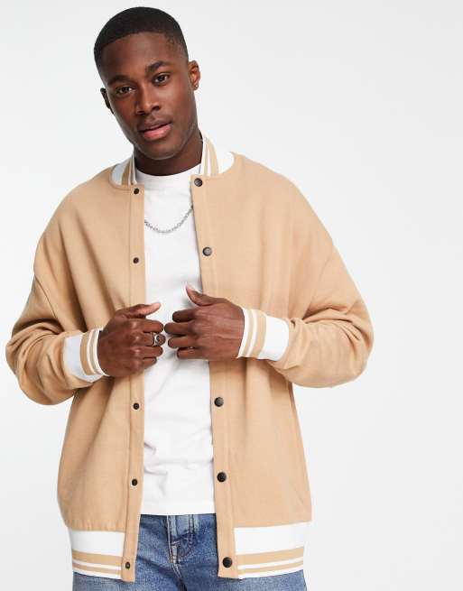 Chaqueta bomber beis extragrande con ribetes de punto de ASOS DESIGN