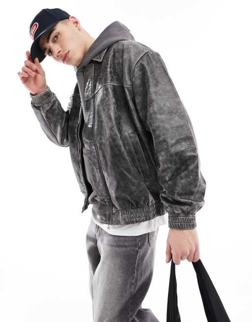 Chaqueta bomber con lavado envejecido de cuero auténtico de ASOS DESIGN