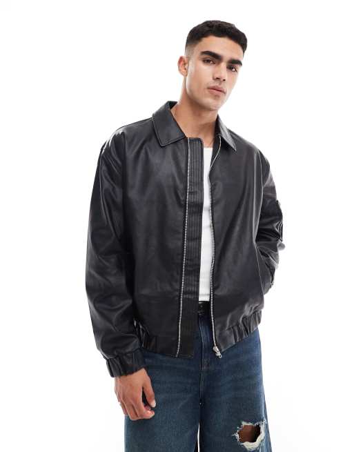 Chaqueta bomber negra extragrande de cuero sintético de ASOS DESIGN