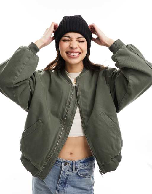 Chaqueta bomber vaquera caqui de ASOS DESIGN