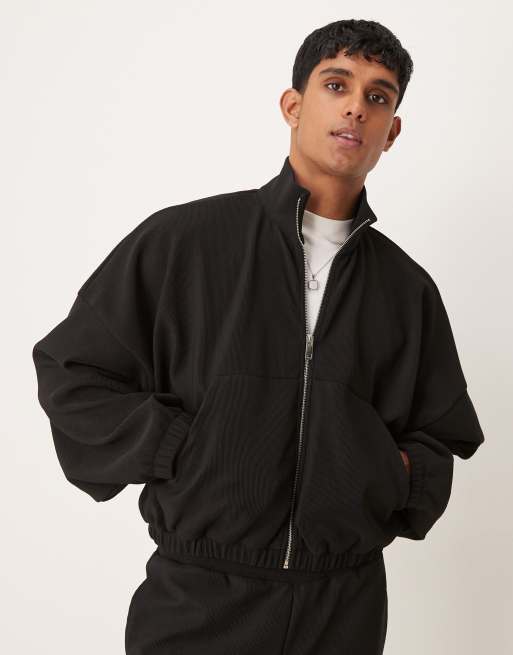Chaqueta de chándal corta negra ultragrande de canalé de ASOS DESIGN (parte de un conjunto)
