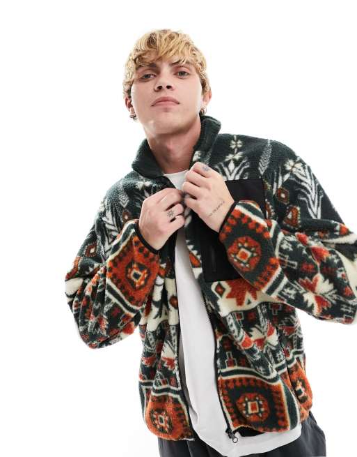 Chaqueta de chándal extragrande con cremallera y estampado de patrón integral de borreguito de ASOS DESIGN