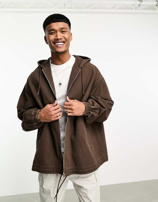 Chaqueta de entrenador marrón lavado ultragrande de ASOS DESIGN