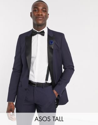 Chaqueta de esmoquin ajustada en azul marino de ASOS DESIGN Tall