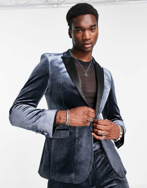 Chaqueta de esmoquin azul marino muy entallada de terciopelo de ASOS DESIGN