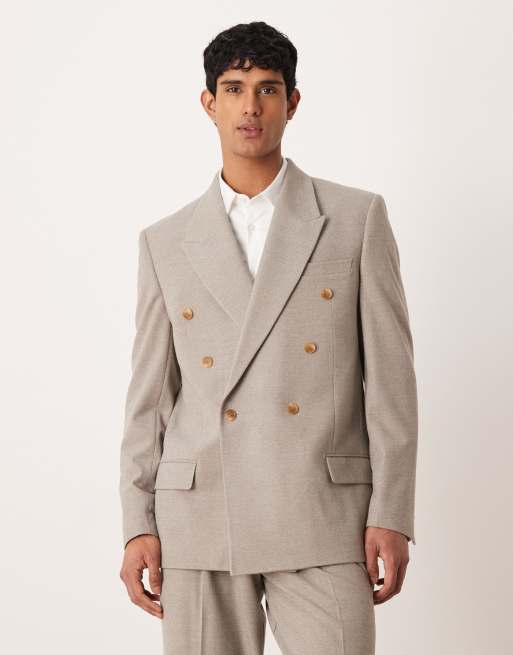 Chaqueta de traje beis holgada con hombros cuadrados de franela de ASOS DESIGN