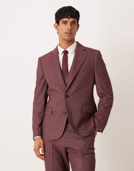 Chaqueta de traje burdeos de corte slim de tejido de espiga de ASOS DESIGN