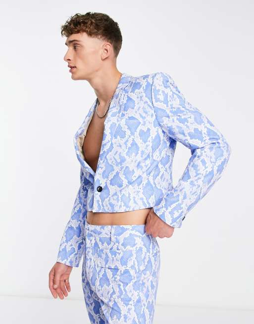 Chaqueta de traje corta azul con estampado de serpiente de ASOS DESIGN