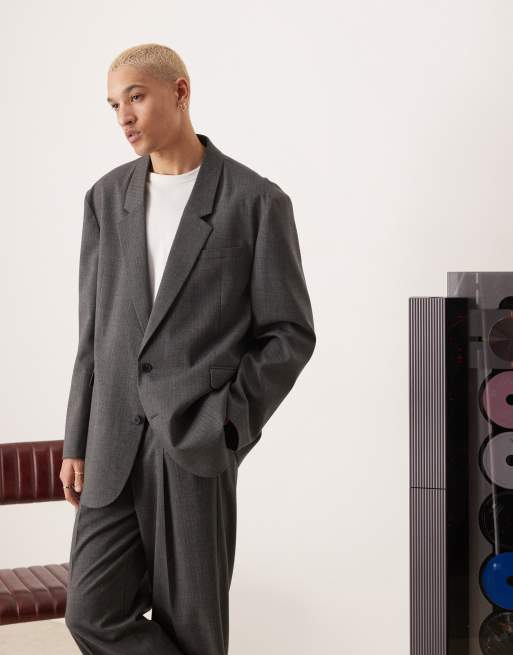 Chaqueta de traje gris carbón extragrande y holgada con patrón de espiga pequeño de ASOS DESIGN