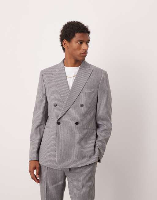 Chaqueta de traje gris de corte slim con raya diplomática y doble botonadura de ASOS DESIGN